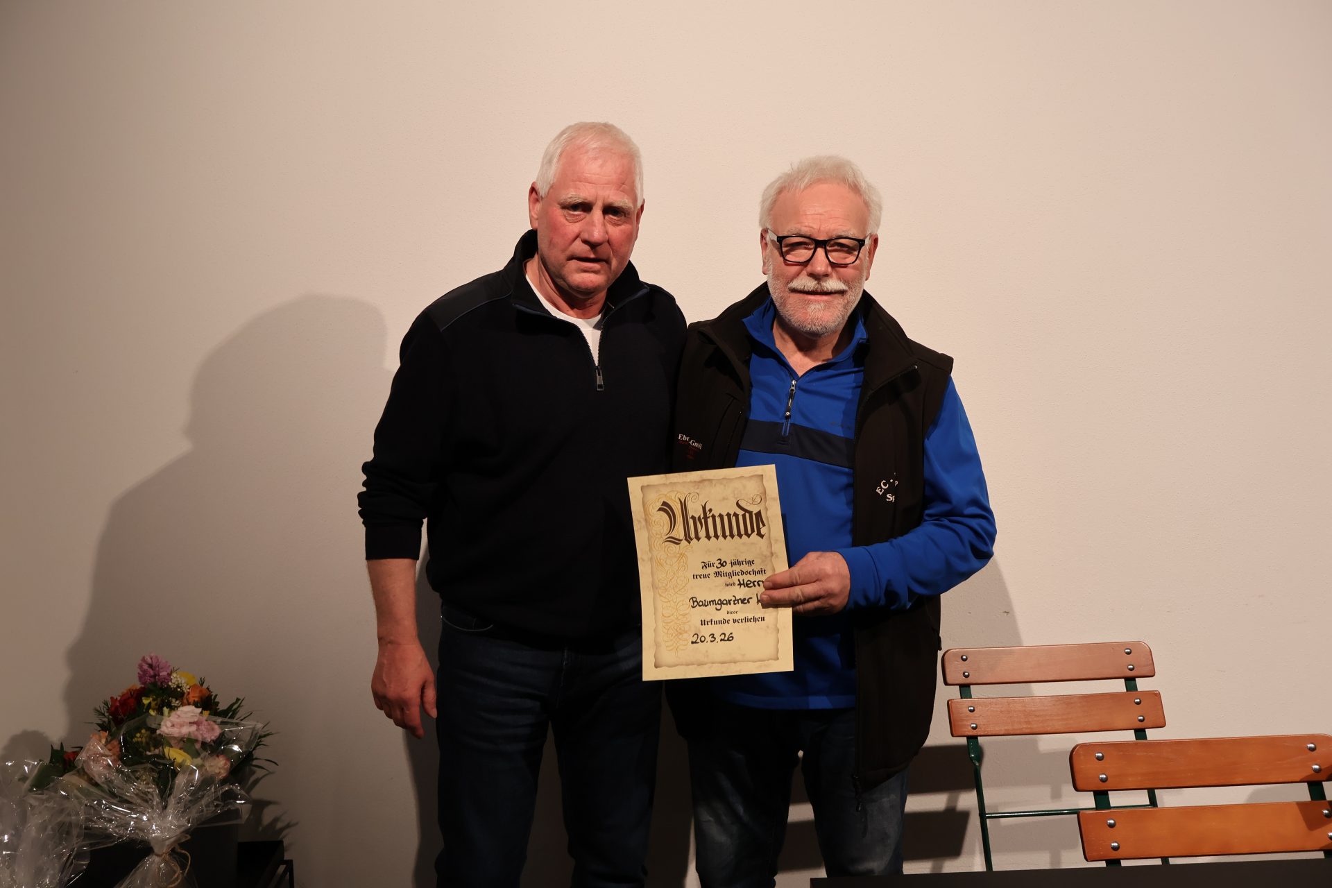 Besonders hervorzuheben sind zwei Mitglieder, die dem Verein bereits seit 58 Jahren die Treue halten: